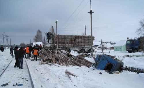 Поезд протаранил лесовоз