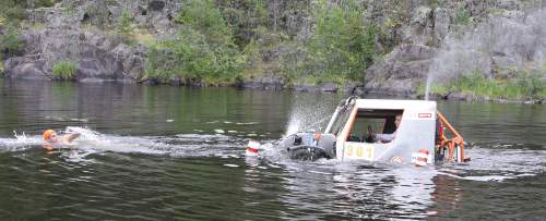 Короче говоря, трасса оказалась очень непростой. Резкий спуск, коридор устланный камнями, крутая скала, брод... Все это нужно было преодолеть. Каждый метр трассы таил в себе какую-нибудь опасность. Ошибки обходились дорогой ценой. К чести спортсменов отметим, что практически все они справились. В «Спорте» выбыли только два экипажа - «Орион» и «Полосатик». Однако эвакуация им не потребовалась — выбрались сами.
