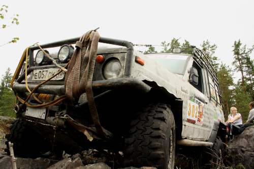 Второй этап — скальный триал — проходил в окрестностях знаменитого Поор-порога. Место организаторы выбрали удачно. Даже неискушенные зрители понимали: «Что-то будет!» Здесь и человеку-то ноги сломать - плевое дело. Что уж говорить об автомобилях?! Хотя для «котлет» участников фестиваля непреодолимых препятствий почти нет, многие из них, взглянув на трассу, стали нервно посмеиваться и бормотать под нос что-то вроде: «я туда ни ногой, мне жизнь дорога...». Но собравшись с мужеством, они ринулись в бой.