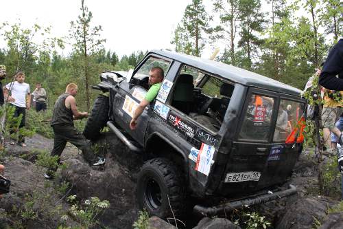 Ну а самой волнительной частью стало, конечно же, офф-роудное состязание — II этап Открытого кубка Петрозаводска по внедорожному спорту. Проходило соревнование в 4 категориях: «Серия», «Лайт», «ATV» (квадроциклы) и «Спорт». Участникам было предложено пройти два этапа — дюнную гонку и триал на камнях. Всего 40 экипажей испытывали себя и свою технику на прочность.