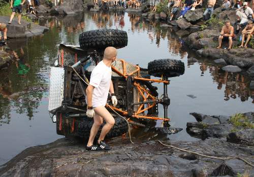 Но во втором броде рельеф сыграл с экипажем злую шутку – «котлета» перевернулась.