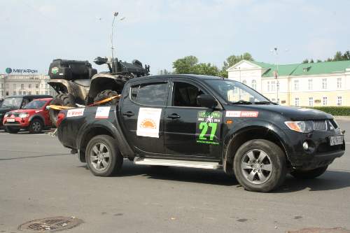 Вслед за квадрациклами на трассу устремились спортсмены: четыре подготовленных авто шли тем же путем, что и «квадрики». Первыми стартовали «Шатуны» Алексея Филина и Романа Жукова.