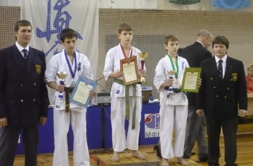 5 и 6 февраля в Москве прошло открытое первенство и чемпионат столицы по каратэ-киокусинкай. Москва и Московская область являются традиционно сильным центром развития каратэ-киокусинкай в России. И в этот раз состав сборной Москвы был представительным. Кроме того, в турнире принимали участие более 200 спортсменов из Москвы и Московской области, Санкт-Петербурга, Твери, Архангельска, Челябинска, Тулы, Пензенской области и Карелии.Великолепный результат показала команда Карелии. Ее составили учащиеся петрозаводской ДЮСШ-5 (отделения каратэ-киокусинкай), ученики заслуженного наставника боевых искусств России, обладателя 4 дана Анатолия Кукшиева. Первое место среди старших юношей 14-15 лет в весе до 45 кг занял Матвей Матов. На этом турнире Матвей выполнил норматив кандидата в мастера спорта. Также парень получил специальный приз и кубок турнира в номинации «За самый короткий бой».