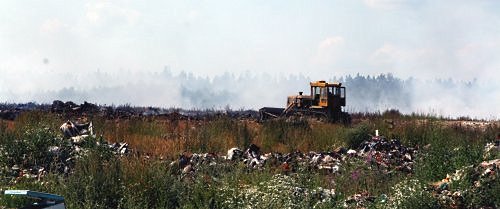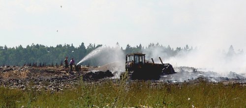 А господин Рыбаков опять пиарится на пустых советах... "Выполняется бульдозерами, которые совершают спиралевидные движения вокруг очага возгорания. Перемешивать горящий торф можно мощными бульдозерами типа Т-130, Т-170, в результате чего температура в очаге снижается, и дальнейшее горение прекращается. " - суть метода Сретенского. Но здесь-то вроде у нас не торф горит, а всякий бумажно-полиэтиленовый мусор.