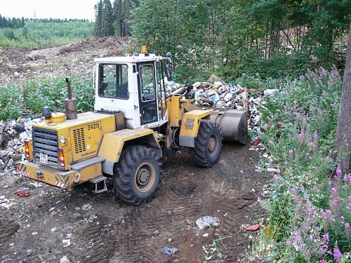 Один и тот же погрузчик работает и возле домов, и в лесу. Маловато будет! А так - пора всем нарушителям браться за ум! И... заплатить. ;(