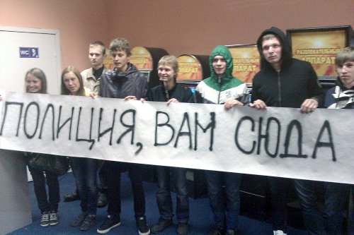 "Полиция, вам сюда!" - такие баннеры появились недавно над дверями некоторых петрозаводских интернет-клубов, в которых, по мнению активистов карельского отделения движения "Наши", функционируют незаконные игорные заведения. Карельские "нашисты" решили проверить информацию МВД об очередном ликвидированном подпольном казино. Молодежь прошла по городу и за полчаса обнаружили пять работающих игорных домов.Как рассказали участники акции, они наклеили большие баннеры с соответствующей надписью там, где работали казино. Уже у второго по счету игорного клуба их встретил владелец, который, по словам ребят, угрожал им физической расправой. У третьего заведения их тоже ожидали, но на этот раз предлагали деньги, чтобы они ушли. В четвертом "Наши" попали внутрь и сфотографировали процесс. Пятое игорное заведение и все последующие, несмотря на круглосуточный режим работы, оказались закрыты.