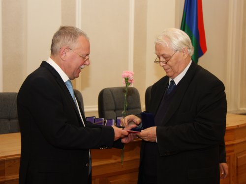 В преддверии Дня народного единства, который вся страна отмечают 4 ноября, состоялась торжественная церемония вручения государственных наград России и Карелии. В зале заседаний правительства Карелии собрались лучшие педагоги, врачи, управленцы, руководители и работники предприятий и общественных организаций Карелии, деятели культуры - все, кто достиг больших успехов в профессии и являются настоящей гордостью республики. Награды вручал глава Карелии Андрей Нелидов. Всего орденами, медалями, почетными званиями, грамотами и благодарственными письмами отмечены 40 жителей Карелии.Церемония по традиции началась с вручения российских наград. 13 жителей республики получили почетное звание «Заслуженный работник Российской Федерации» в своих отраслях деятельности. Особо зал встречал студента агротехнического факультета ПетрГУ Антона Денисова и егеря из Питкярантского района Николая Шевырева. Указом президента России Антон Денисов, Николай Шевырев и еще один егерь Иван Сумкин, который не смог присутствовать на церемонии, удостоены медали «За спасение погибавших». На троих они спасли четырех тонущих людей, и, как заметил на церемонии награждения Николай Шевырев, еще собаку.