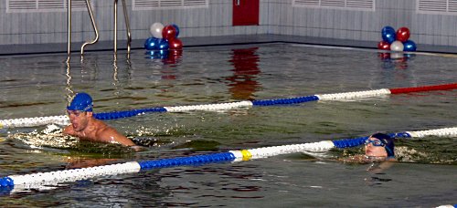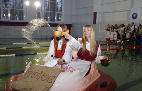 Торжественный пуск в новый бассейн первой воды - это и традиция, и в то же время проверка работы всех систем. Также в бассейне состоялся первый заплыв, который совершили чемпион России 2009 года по зимнему плаванию, старший преподаватель кафедры физического воспитания и спорта ПетрГУ Геннадий Крикунов и победительница чемпионата Эстонии по зимнему плаванию 2011 года Маргарита Емельянова.