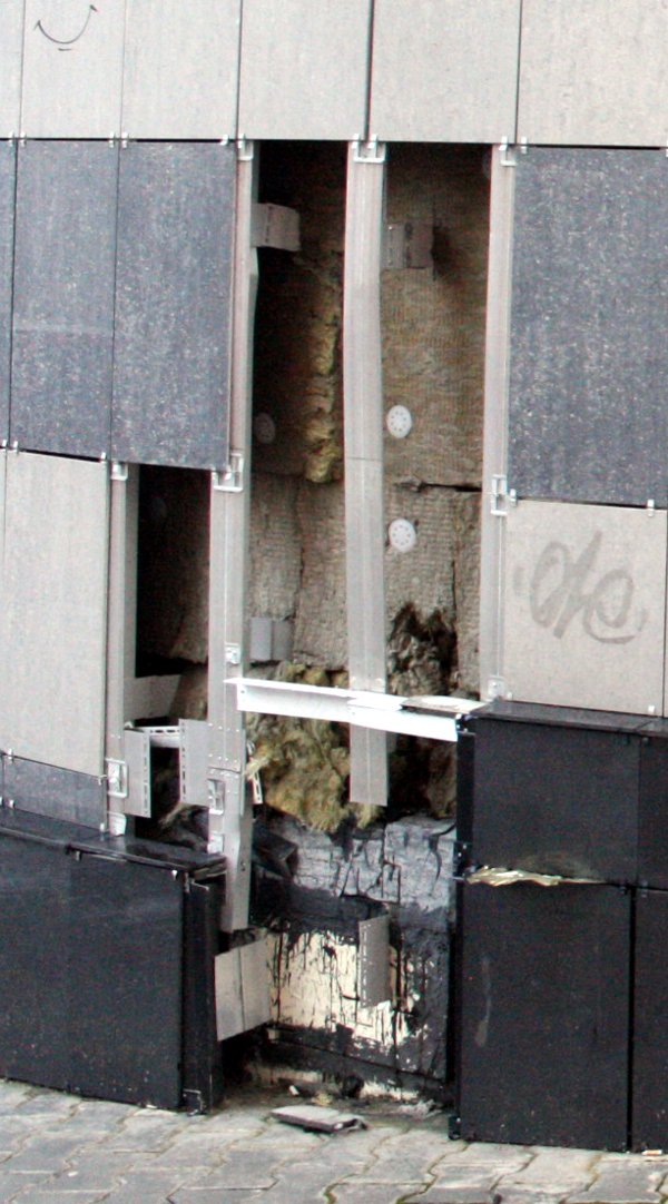 Для тех, кто думает, что на соплях построено и за плиткой старье: это вентилируемый фасад, прослойка воздуха должна быть, за ней утеплитель минераловатный. Плитка держится на кляммерах - они выдерживают ураганный ветер, но простите, если наша быдлоты не способна удержаться и не сломать что-нибудь - менталитет такой. Тем более кто-то сказал, что въехали на машине. ибо искать кто въехал - что маловероятно, либо скинуться жильцам по 100 рублей и купить плитку. Недорого она и стоит. Но не надо думать, что построено абы как - построено более менее, тем более это не монолитка от Саны за 3 месяца с кривыми потолками...