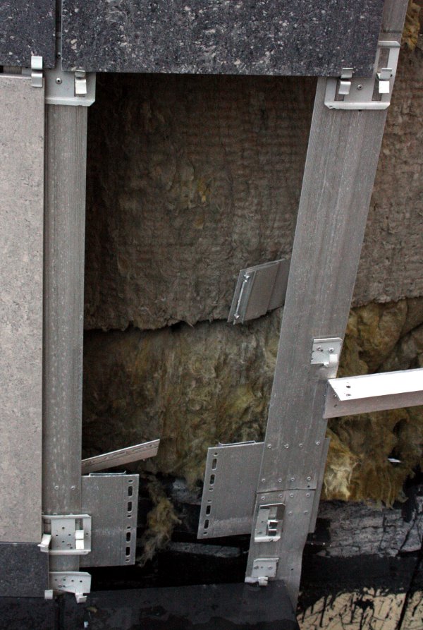 Для тех, кто думает, что на соплях построено и за плиткой старье: это вентилируемый фасад, прослойка воздуха должна быть, за ней утеплитель минераловатный. Плитка держится на кляммерах - они выдерживают ураганный ветер,[/quote]
