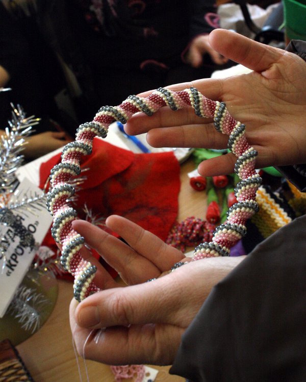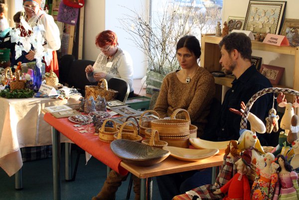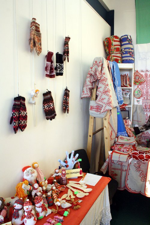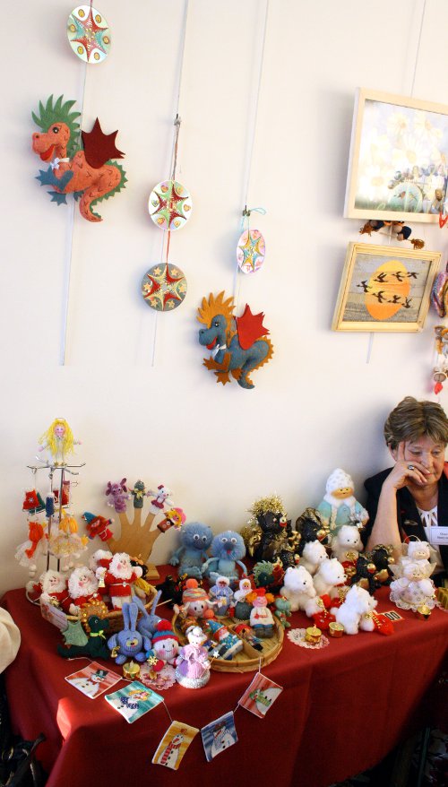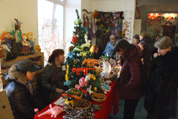 В преддверии надвигающихся новогодних праздников все более актуальна становится проблема выбора подарков и украшений. Хочется найти что-то такое, что было бы не традиционным китайским ширпотребом, не банальными из года в год повторяющимися атрибутами праздника. Помочь в этом, как оказывается, нелегком деле может рождественская выставка-ярмарка, открывшаяся сегодня в медиа-центре «Vыход».Это уже третья ярмарка, на которой мастера предлагают свои изделия покупателям. На выставке представили свои работы 40 мастеров-ремесленников и 3 организации. Каждый уделил особое внимание, чтобы ассортимент отвечал тематике торжества. Однако на столах вы увидите не только дедов морозов, снеговиков и дракончиков. Там даже смешарики есть. Причем многие изделия изготавливаются прямо на месте. Вышивальщицы шьют кукол и зверюшек, под ловкими руками гончара глина обретает форму. Сотни различных игрушек, украшений, варежек, сумок, талисманов и оберегов, ковровых дорожек, берестяных и деревянных туесков и корзинок, на все это можно посмотреть - за погляд, как известно, денег не берут, - а можно и приобрести. Выбор подарков и сувениров велик.