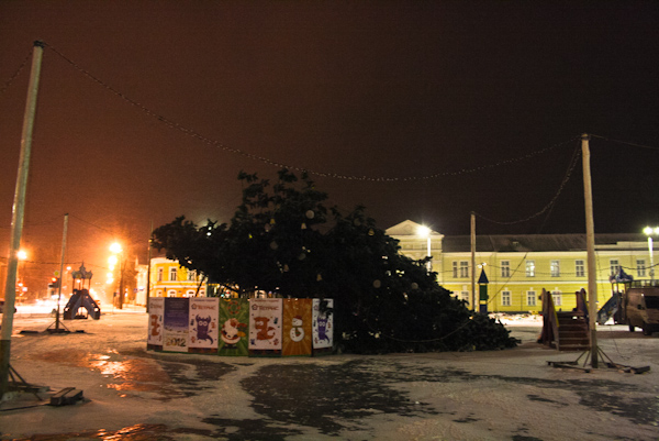 Не везет Петрозаводску в этом году с новогодними елками. Мы уже сообщали о том, что вандалы разорили ель на Ключевой, также пострадала и кукковская лесная красавица. А вчера вечером, примерно часа в 23, на площади Кирова в Петрозаводске рухнула новогодняя елка. Обошлось, к счастью, без жертв, разве только праздничное настроение и радость детишек будет несколько омрачено.