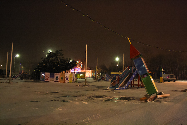 Причиной падения елки стал шквальный ветер. Вслед за елью чуть было не рухнули башенки городка, порывы ветра разметали пластмассовые стулья и столики, сорвали с места торговую палатку. То есть штормовое предупреждение, о котором так долго предупреждало МЧС, наконец-то сбылось.