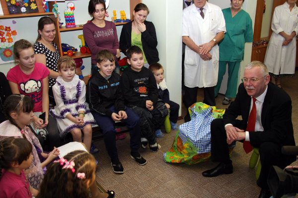 Свою лепту в это дело внес и Андрей Нелидов. Глава республики на время перевоплотился в Деда Мороза - фигурально, конечно же, - поздравил маленьких пациентов с наступающим Новым годом и вручил им новогодние подарки – наборы для творчества и развивающие игры. Не остался без подарков и сам руководитель региона. Мальчишки и девчонки подготовили и прочитали главе республики стихотворения. А еще смастерили красочную новогоднюю открытку и самодельные игрушки. Эту открытку А.Нелидов, как пообещал детям, повесит у себя в кабинете.