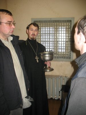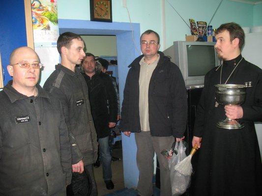 Бог, как говорится, видит и привечает всех, и заключенные СИЗО - не исключение, так что имеют право тоже приобщиться к празднику. Николай Белов окропил всех "постояльцев" изолятора святой водой и пожелал, чтобы им достало бодрости духа и силы воли, чтобы встать на путь исправления.