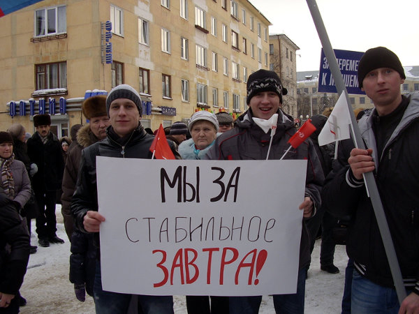 В минувшую субботу в Петрозаводске состоялся очередной митинг. Акция была организована объединением организаций профсоюзов в РК под лозунгом «За социальную стабильность России». Профсоюзы планировали, что площадку у фонтана на Студенческом бульваре, где проходило мероприятие, посетят не менее тысячи человек, но народ не проявил особой активности. Поддержать профсоюзы пришли по разным оценкам от 300 до 400 человек, среди которых были члены отраслевых профсоюзов, бизнесмены, студенты.