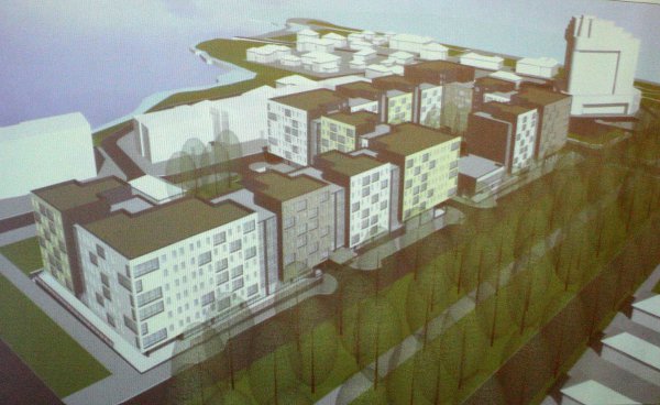 Можно и детскую площадку, можно спортивный центр. Но если уж ни решили, что жилые дома в любом случае построят, но пусть хоть построят не монстра какого-то, а нормальные дома. Мне лично нравится, как на первой картинке, вполне пристойно и современно.