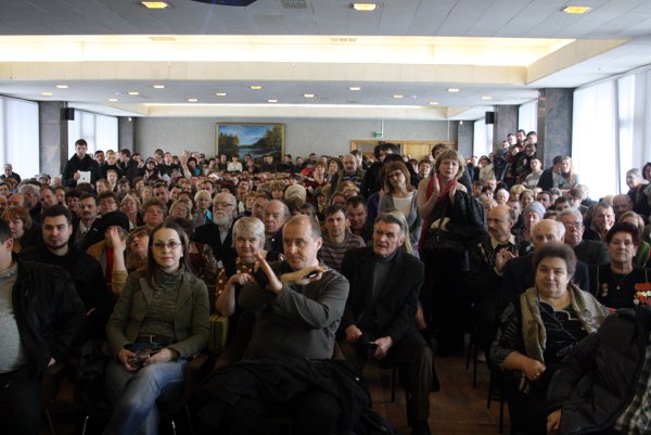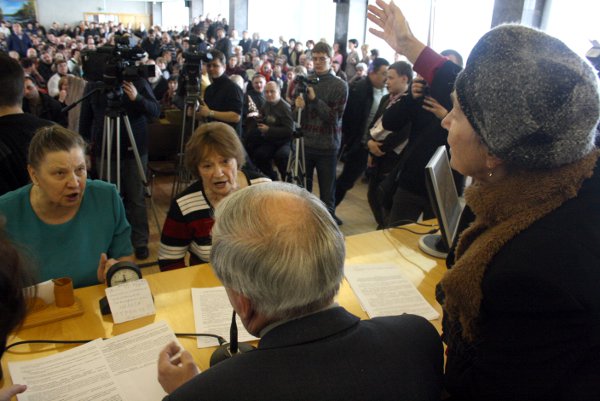 Причем, как оказалось, далеко не все понимали, ради какого вопроса люди собрались на слушания. Многие считали, что они идут голосовать "за" или "против" какого бы то ни было строительства вообще. Депутат горсовета Ольга Залецкая попыталась прояснить этот момент и напомнила всем, что на обсуждение ставится увеличения высоты застройки с 17 до 41,5 метра и площадь на 50%. Однако ни о каком проекте говорить нельзя, поскольку, несмотря на заверения компании-застройщика, не проводилось никаких экспертиз, ни один специалист не давал своего заключения, ни экологического, ни исторического, ни какого либо иного. Заодно она сообщила, что многие пришли голосовать только потому, что им обещали за это по 400 рублей. Что, естественно, вызвало возмущение тех, кто пришел голосовать в пользу застройки по собственной воле - не ради компании, а против уродливого пустыря.
