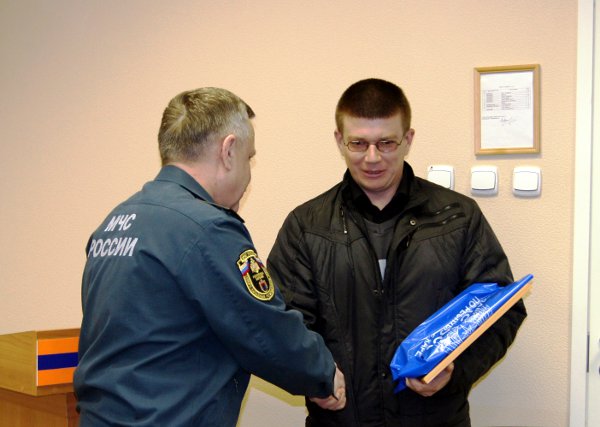 Сегодня в присутствии личного состава Главного управления МЧС России по Республике Карелия за отважный поступок Вячеслав Кириллов был отмечен почетной грамотой. Поблагодарив гражданского спасателя за благородство и решительность действий, руководитель МЧС по Республике Карелия Владимир Гусев отметил, что многие в подобной ситуации просто позвонили бы в службу-01 и в ожидании помощи снимали бы все происходящее на мобильный телефон.