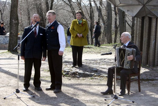 Народ слушает песни военных лет в исполнении ветеранов
