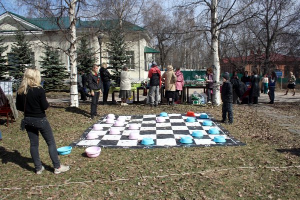 А рядом любители интеллектуального спорта могли сразиться в такие необычные шашки