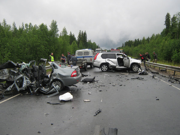 Судя по фоткам, это произошло на хорошем участке дороги. Мне кажется, в России все дороги нужно разрушить, чтобы машины передвигались не больше 40-50 км. в час.