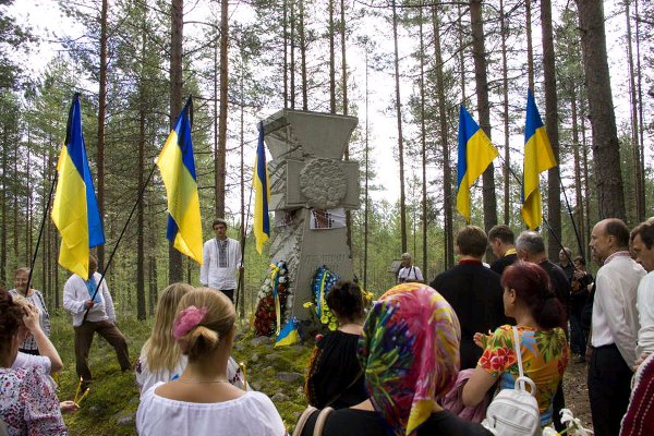 По словам руководителя украинской делегации, председателя общества политзаключенных и репрессированных на Украине Григория Куценко, Сандармох - очень тяжелое место для Украины, потому что в нем похоронены ее лучшие сыны: «В урочище захоронены наши режиссеры, писатели, композиторы - в основном творческие люди. Мы склоняем головы перед памятью тех, кто здесь погиб». Генконсул Польши в Санкт-Петербурге Петр Мартинюк также отметил, что этот участок карельских лесов - место скорби и памяти, которое всегда будет напоминать о том, что 75 лет назад здесь было совершено убийство невинных людей.