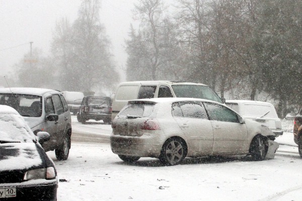 Такое ДТП только что произошло на ул.Пушкинской. Столкнулись три автомобиля, "Шевроле" и два "Фольксвагена". По словам водителя "Шевроле", виноват владелец одного из "Фольксвагенов", который до сих пор разъезжает на летней резине. Не сумев вовремя затормозить, он ударил в задний бампер второй "ФВ", который от удара отлетел прямо в крыло "американцу". Сейчас троица пострадавших перегородила Пушкинскую, создав затор, в ожидании ГИБДД.