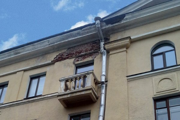Кусок стены жилого дома в Петрозаводске, обрушившийся месяц назад, до сих пор не убран