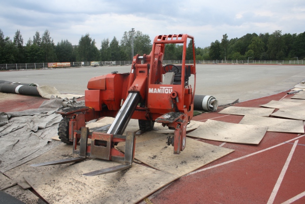 Ожидается, что работы будут завершены к концу сентября. А начнут укладку нового поля завтра-послезавтра, так как у погрузчика сломалось колесо, а за новым пришлось ехать в Санкт-Петербург.