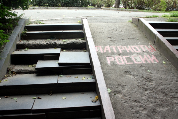Эта лестница была построена в 1977 году. Около 10 лет назад ее отремонтировали молодые активисты политической партии "Патриоты России", о чем свидетельствует выложенная посреди лестницы надпись. Но к нынешнему дню она совсем пришла в негодность - ступени разбиты, отсутствуют несколько секций перил. За все эти годы за лестницей не следили, она была предоставлена воле погоды и времени.