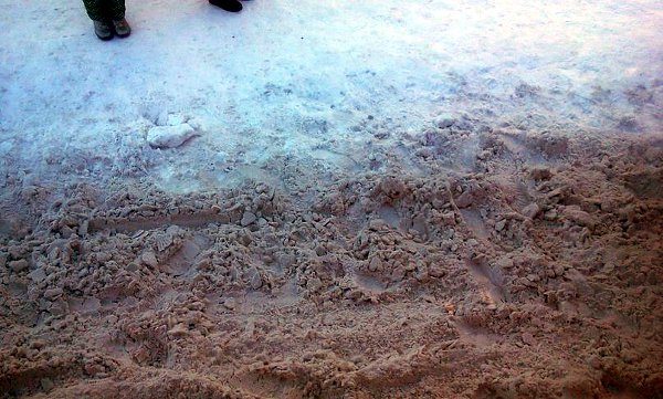 При этом, что самое странное, эти дороги считаются почищенными - по ним ездил грейдер или трактор, сметая снег с середины трассы на обочину. Но, расчищая середину, техника заполоняет боковые участки проезжей части, создавая такую "кашу". Убирать это месиво с дорог и расчищать тротуары должны бы дворники, но на многих улицах города, особенно в отдаленных районах, их почему-то не видать. Как мы уже сообщали, по этому вопросу необходимо спрашивать у своих управляющих компаний, так как дворники - сотрудники этих организаций - не подчиняются напрямую администрации города.