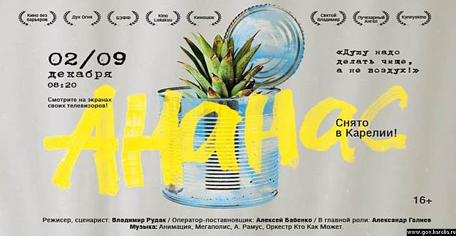 На телеканале «Россия-1» покажут фильм «Ананас» карельского кинематографиста Владимира Рудака. Демонстрация картины пройдет при поддержке Минсоцзащиты республики. Лента выйдет в эфир 9 декабря в 8.20 утра.