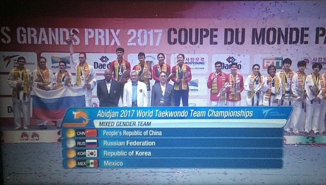 В полуфинале россияне разгромили сборную Мексики со счетом 67:27. В финале наши тхэквондисты уступили команде Китая лишь в дополнительном раунде, основное время поединка завершилось вничью - 53:53. Бронзовыми призерами стали спортсмены из Южной Кореи и Мексики.