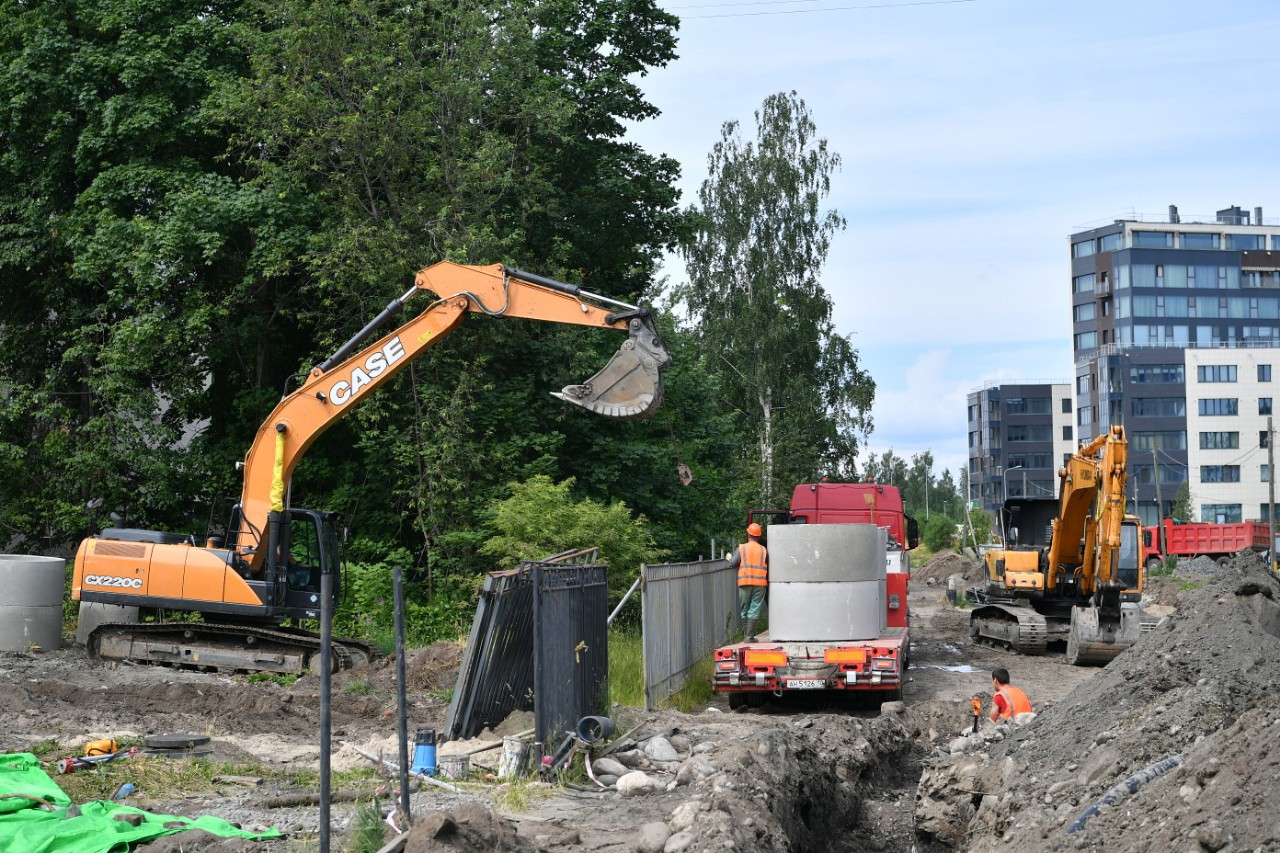 В настоящее время специалисты ведут работы по переустройству коммуникаций: газо- и водопровода, сетей связи. Объект уже готов на 17%.