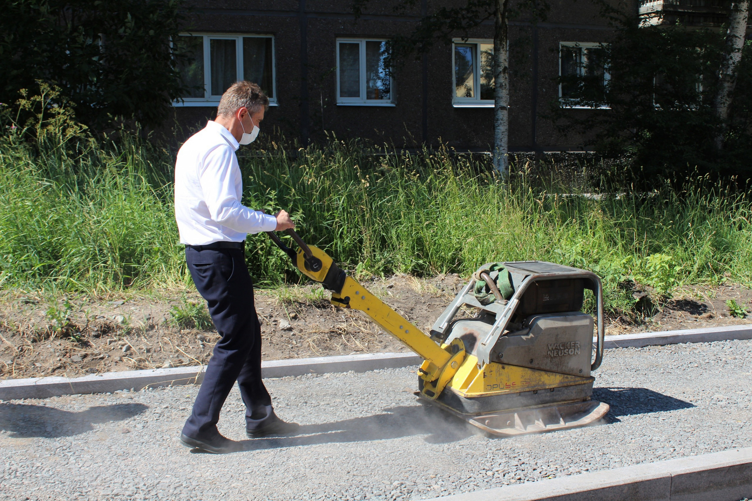 А после рабочей встречи мэр ненадолго сменил профессию – испытал себя в роли рабочего. Он утрамбовал участок тротуара с помощью вибропилы и внес свой вклад в дорожный ремонт столицы Карелии.