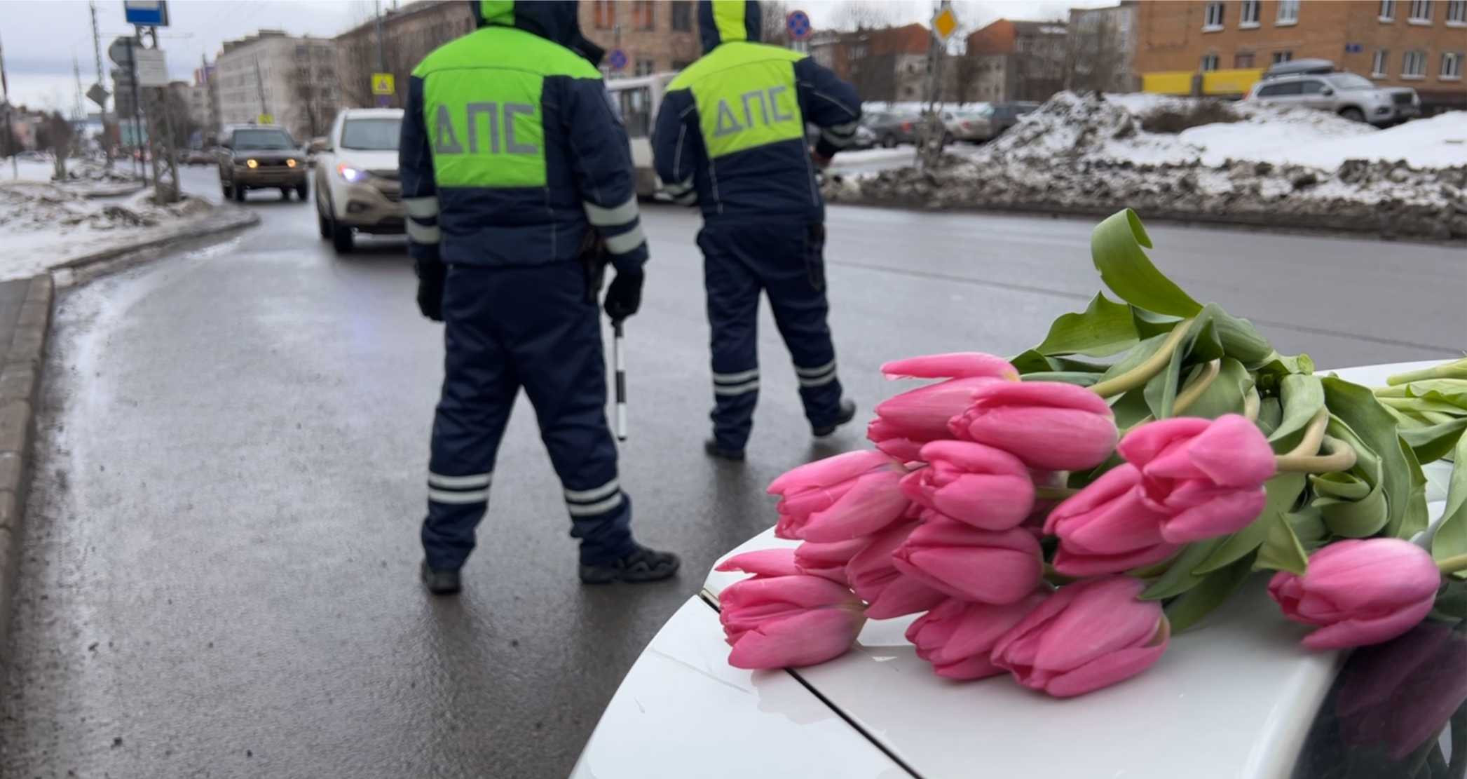 Юные инспекторы дорожного движения из Карельского кадетского корпуса имени Александра Невского поздравили женщин с праздником.