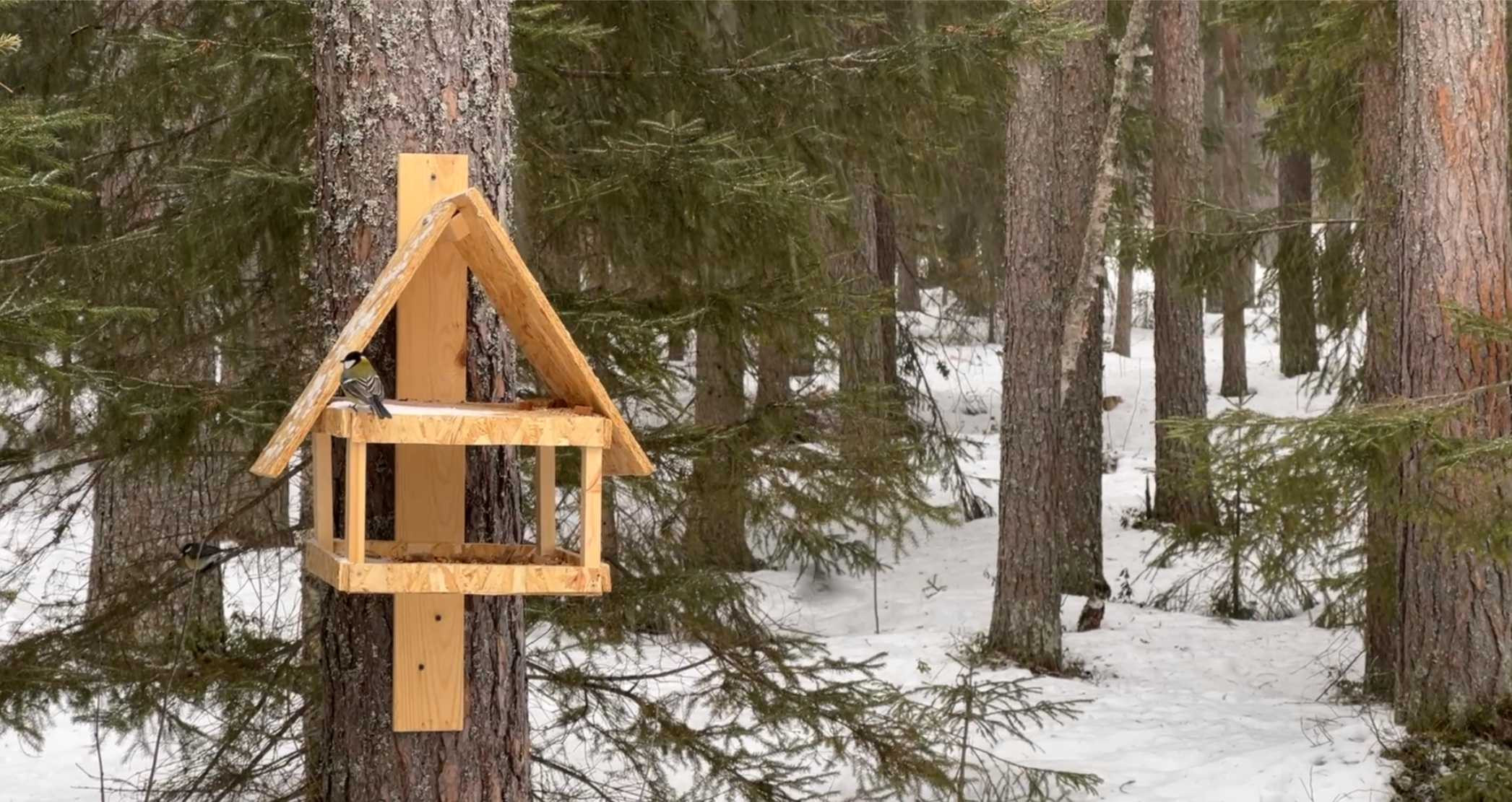 Петрозаводчанка Анна Куревина развесила отремонтированные кормушки в парке на Древлянке.