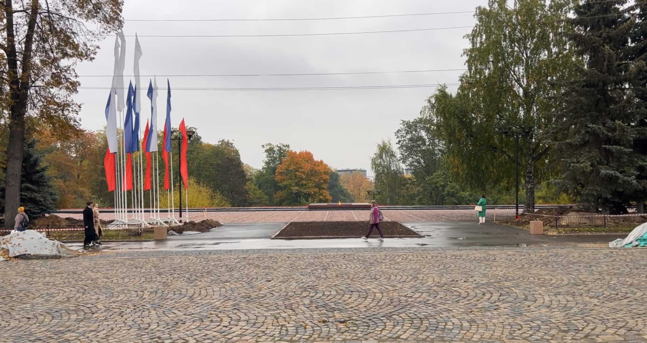 Новое освещение начали монтировать у Вечного огня в Петрозаводске