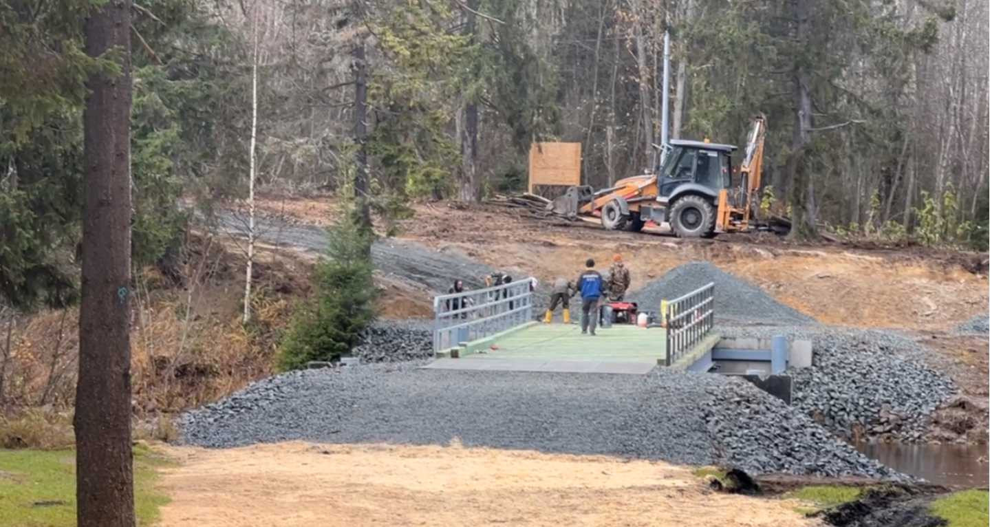 Уже с настилом и перилами: как выглядит новый мост через Лососинку