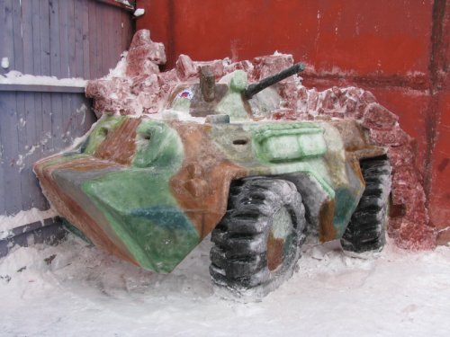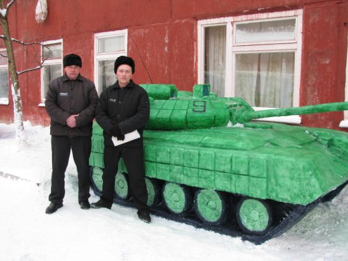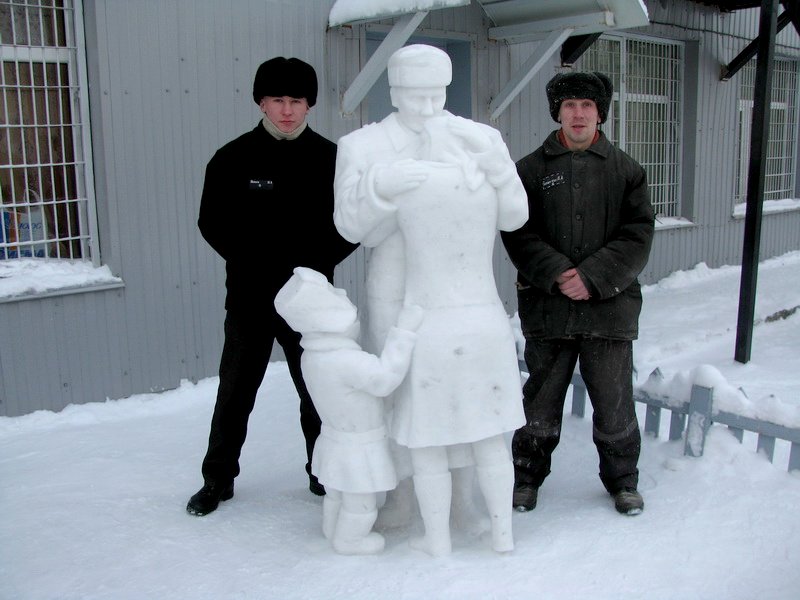Снежные фигуры лепят не только на петрозаводской набережной во время фестиваля "Гиперборея". Уже не первый год проводятся такие же конкурсы в ИК-9, и с каждым годом вызывают все больший интерес. Прежде всего, у самих осужденных. Конкурс в этом году решено было сделать тематическим и приурочить его ко дню победы в Великой отечественной войне. Участие в нем приняли представители всех отрядов колонии. Времени на изготовление фигур у осужденных было более чем предостаточно. Все скульптуры оказались выполнены с выдумкой и большой творческой фантазией.