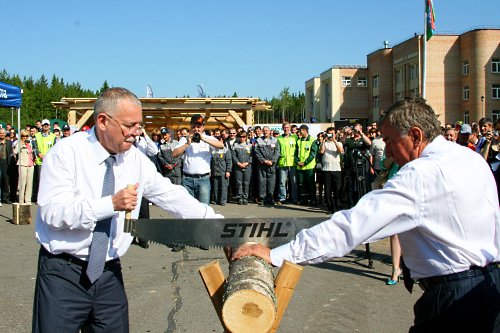 подспорьем карельской экономики.В церемонии открытия выставки приняли участие глава РК Андрей Нелидов, который много лет назад как организатор открывал самую первую выставку «Интерлес» в Ленинградской области. В качестве символического начала работы выставки Андрею Нелидову и Александру Полукееву предложили распилить бревно двуручной пилой.