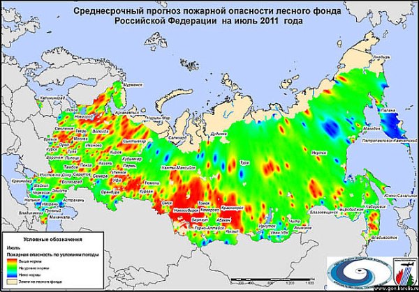 опасности на июль 2011 года. На европейском севере России наибольшему
