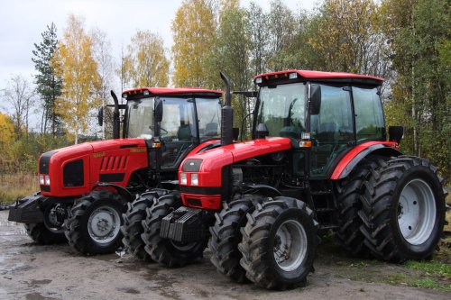 На технику идентичную "Беларусам" навесили по еще одному колесу и...получился болотоход!)))