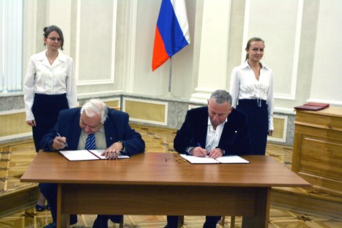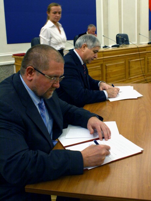 Сегодня в правительстве в рамках международного форума «Инвестиции в будущее» состоялось подписание трех важных документов. Первое соглашение о сотрудничестве между правительством Карелии и Союзом композиторов России подписывали глава РК Андрей Нелидов и председатель Союза Владислав Казенин.Необходимость такого соглашения продиктована условиями самой жизни. И тематикой форума. Сотрудничество с Союзом композиторов воспринимается как один из шагов в развитии общечеловеческой духовности. Как сказал В.Казенин, необходимо развивать промышленность и экономику, но без культуры в самом широком понимании этого слова прожить сложно. С этим согласен и А.Нелидов. Он рассказал, что лет 10-12 назад в России проводился опрос населения, удовлетворены ли вы жизнью. По результатам опроса пришедшее к власти правительство Владимира Путина приняло решение бросить все силы на развитие экономики. Спустя 10 лет, когда в стране повысился уровень жизни, зарплаты возросли более чем в 2 раза, произошло множество других позитивных перемен, результаты повторного опроса удивили: примерно 60% населения России высказали недовольство жизнью. Почему? А потому, ответил на свой же вопрос глава Карелии, что развивая экономические показатели, руководство страны оставило за порогов вопросы духовности и культурного развития.