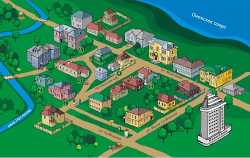Облик города проработан в рисунках старых зданий, которые до сих пор стоят в квартале исторической застройки, - жилых домов и общественных зданий. Таким образом, здесь исторический квартал выступает как миниатюра, типичный уголок Петрозаводска рубежа XIX—XX веков. Здания, как и персонажи, снабжены досье, в которых указано время строительства или реставрации, расположение и назначение. В игре много и иной полезной исторической информации, которая будет интересна жителям Петрозаводска, которые не равнодушны к истории собственного города: о квартале исторической застройки, истории его появления и изучения в XX веке, о провинциальной архитектуре рубежа XIX—XX веков, истории улиц квартала, истории расположенного здесь больничного городка, а также кратким историческим сведениям о старом Петрозаводске, социальном составе и занятиях его жителей. Здания квартала изображены с максимальным сохранением общего облика целых улиц.