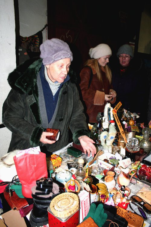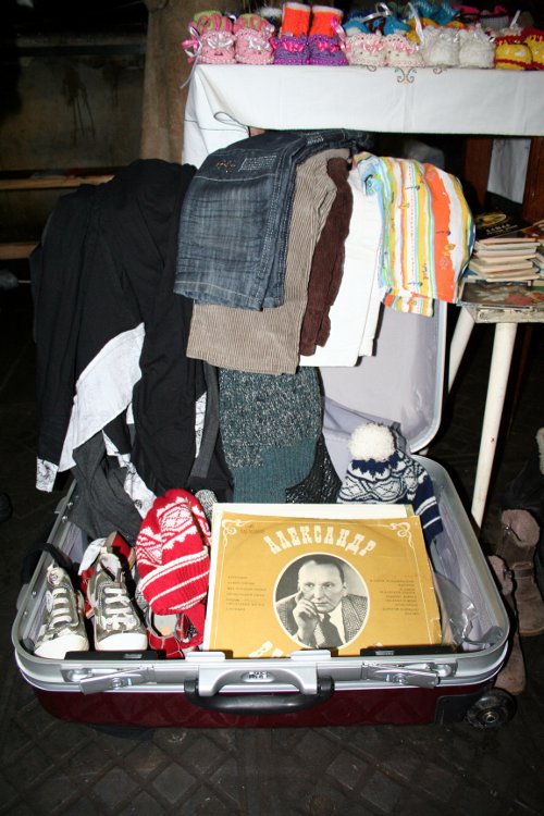 Бывший ремонтно-механический цех ОТЗ превратился в нечто среднее между стихийным рынком, машиной времени и концертным залом, и весь этот коктейль был щедро приправлен предновогодним духом.Множество вещей, которые уже стали историей, но тем не менее вдруг вышли из сундуков и с антресолей, чтобы, возможно, обрести вторую жизнь новых хозяев. Вещи, которые оборачиваются ностальгией по тому, что прошло. Виниловые пластинки, которые сейчас редко в каком доме есть на чем проиграть, а когда-то бывшие объектом охоты и обмена. Значки - ГТО, парашютистов, вузовские, сувенирные - целая россыпь. Статуэтки, книжки, очки - кусочки истории.