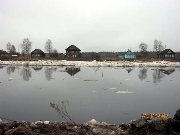Ладву подтапливает не в первый раз, но так сильно не заливало уже давно. Некоторые дома села расположены в пяти метрах от реки, дорога, которую тоже подтопило - еще ближе, она пролегает между селом и рекой.