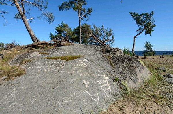 Во время рейда специалисты природоохранных органов и полиции встретили несколько групп туристов, которые вольготно располагались на побережье, жгли костры. Причем вандалы не жалеют даже древние памятники культуры Карелии, забивая петроглифы на прибрежных скалах или оставляя свои автографы рядом. Запрещающие таблички на территории заповедника имеются, однако их традиционно игнорируют. Более того, постоянно воруют как туристы на память, так и местные жители. Недавно один испанский турист увез из Карелии целую коллекцию таких табличек в количестве 15 штук. Одни объявления воруются, другие охотники используют в качестве мишеней: немало стоит информационных щитов, прострелянных в разных местах.