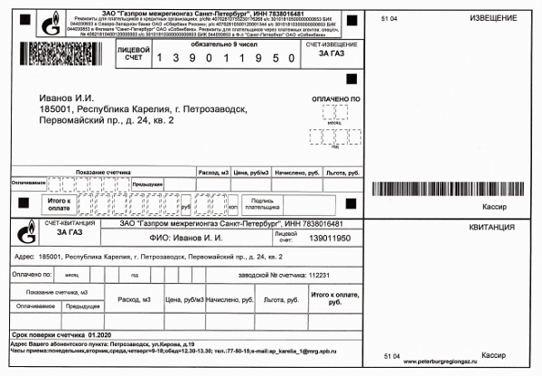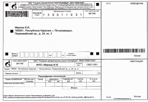 Номер лицевого счета абонента, а также условия начисления и оплаты за газ остаются без изменений. При этом квитанции старого образца, выпущенные до января 2013 года, будут приниматься к оплате наравне с новыми квитанциями.